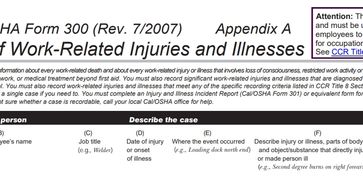 The Log of Work-Related Injuries and Illnesses (Cal/OSHA Form 300) is used to classify workrelated injuries and illnesses and to note the extent and severity of each case.