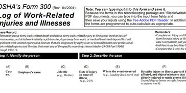 The Forms Packet booklet includes the forms needed for maintaining occupational injury and illness records. Many, but not all, employers must complete the OSHA injury and illness recordkeeping forms. Your company may need to submit your information online through the Injury Tracking Application (ITA). Click on that link for help determining if your establishment is required to electronically submit 300A and 300/301 data through the ITA.